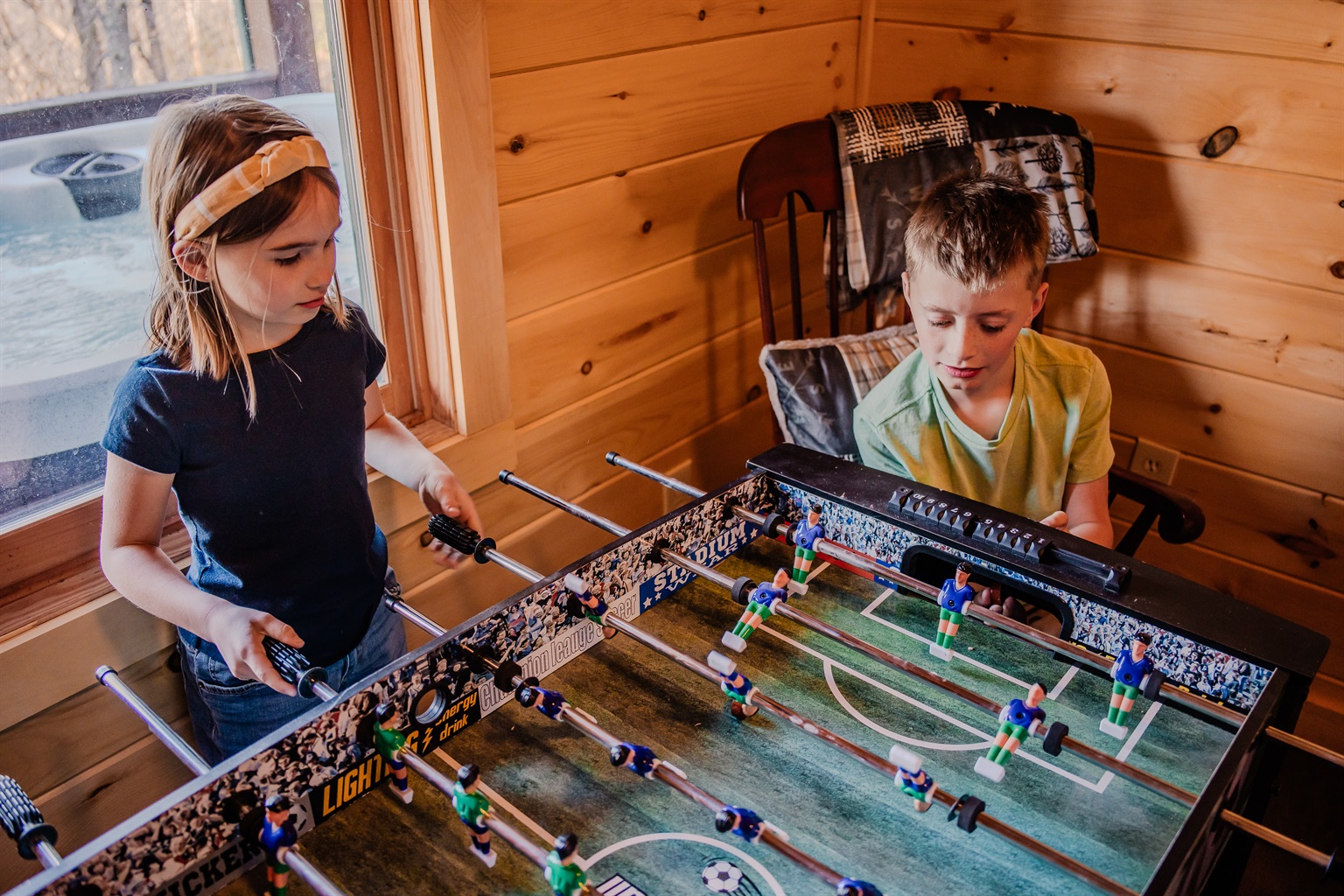 3 Bedrooms • 3 Bathrooms 3 Baths • Sleeps 5-8When you are ready to relax after a day out adventuring, we are ready for you. The hot tub and hammock are waiting for times when you want to do nothing :), the dart board, pool table, and foosball are ready for some friendly competiion while someone else cooks dinner in the well appointed kitchen or on the grill. Our pet friendly 3 bedroom cabin is just 3 minutes from downtown Blue Ridge yet feels worlds away in a quiet, paved mountain neighborhood.