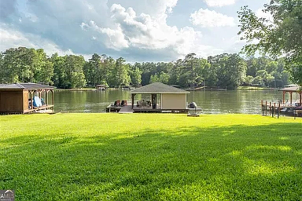 Enjoy sweeping water views from the large lakeside deck or relax on the screened porch with your morning coffee. The level yard leads directly to your private double boathouse with a covered sitting area, perfect for lounging in the shade or enjoying sunset cocktails by the water.