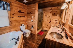 🍽️ The spacious kitchen is a culinary haven, equipped with modern amenities, granite countertops, and a breakfast bar. Enjoy meals at the custom-built knotty pine dining table that seats eight. Retreat to one of the three comfortable bedrooms, each with a king bed, deck access, and a private bathroom featuring cedar double vanities and copper sinks. The upstairs master bedroom even boasts a private balcony with a spectacular mountain view.