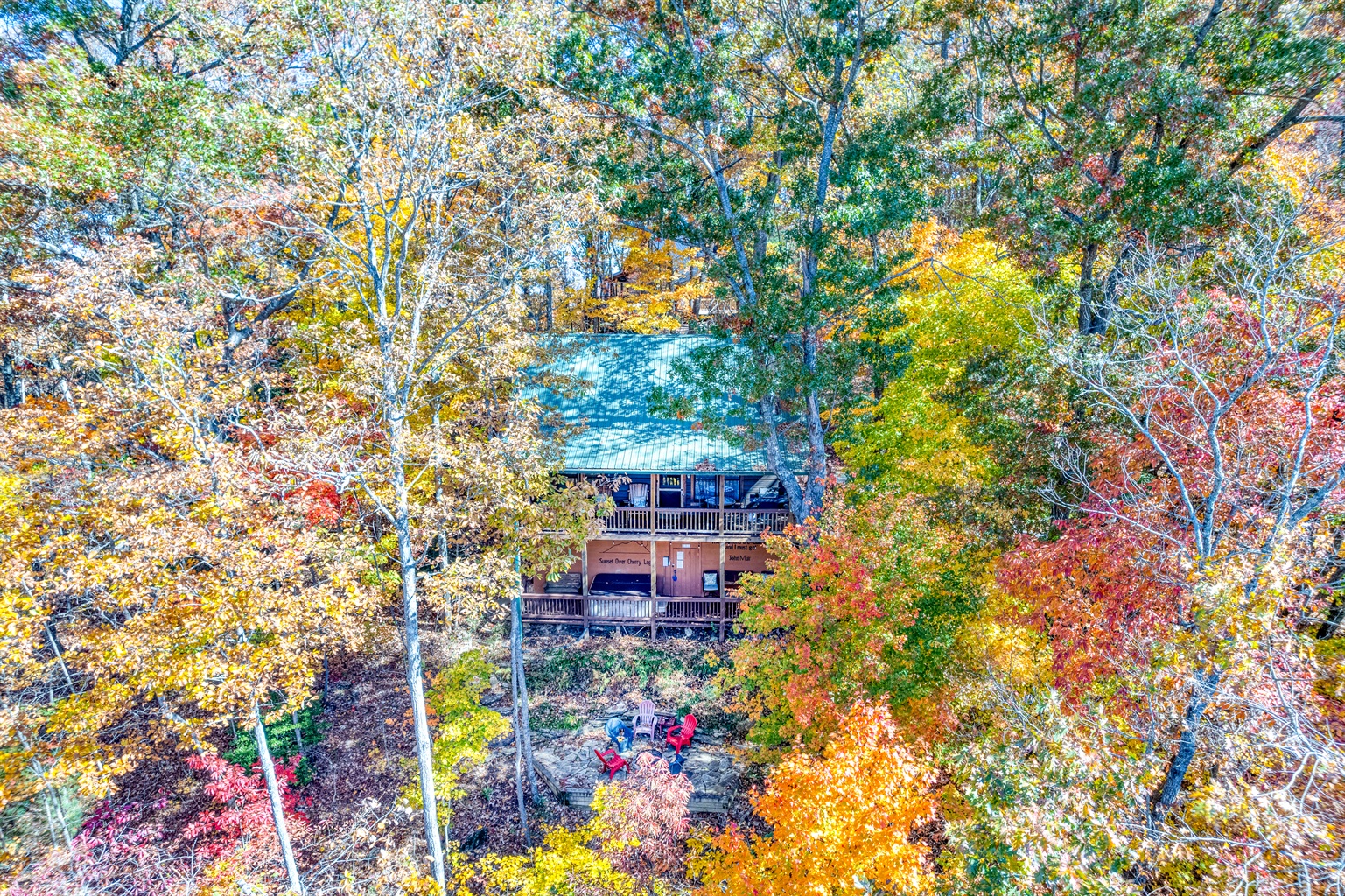 When you first arrive you will walk on the porch facing the sunset and then go past the grill and dining area to get to the front door. The rockers and swing are also on the porch. Once you go inside you will have the stairs to the loft/king bedroom on your left. In front of you to the right is the living room and wood burning fireplace, and the kitchen and dining table is past the living room in an open area shared by both rooms. As you walk forward to your left is a short hallway where you turn left. On the right is the bathroom and then the trundle bedroom with the work desk. Their is a small closet in the trundle bedroom. On the left is the queen bedroom that has double window looking out over the porch toward the sunset. The queen room also has a tv, dresser, and closet. At the end of the all is the washing machine and dryer. A few washer pods and fabric softener sheets are provided for doing laundry.