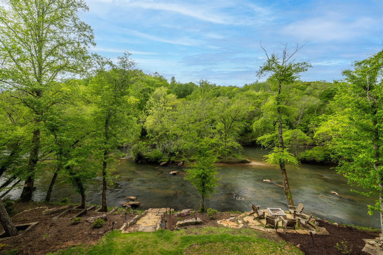 Built in 2020, our lodge sits gracefully along 75 feet of the serene lower Toccoa River, providing you with a front-row seat to the river’s tranquil beauty. Stone steps lead you right into the river for world class fishing or just wading about.